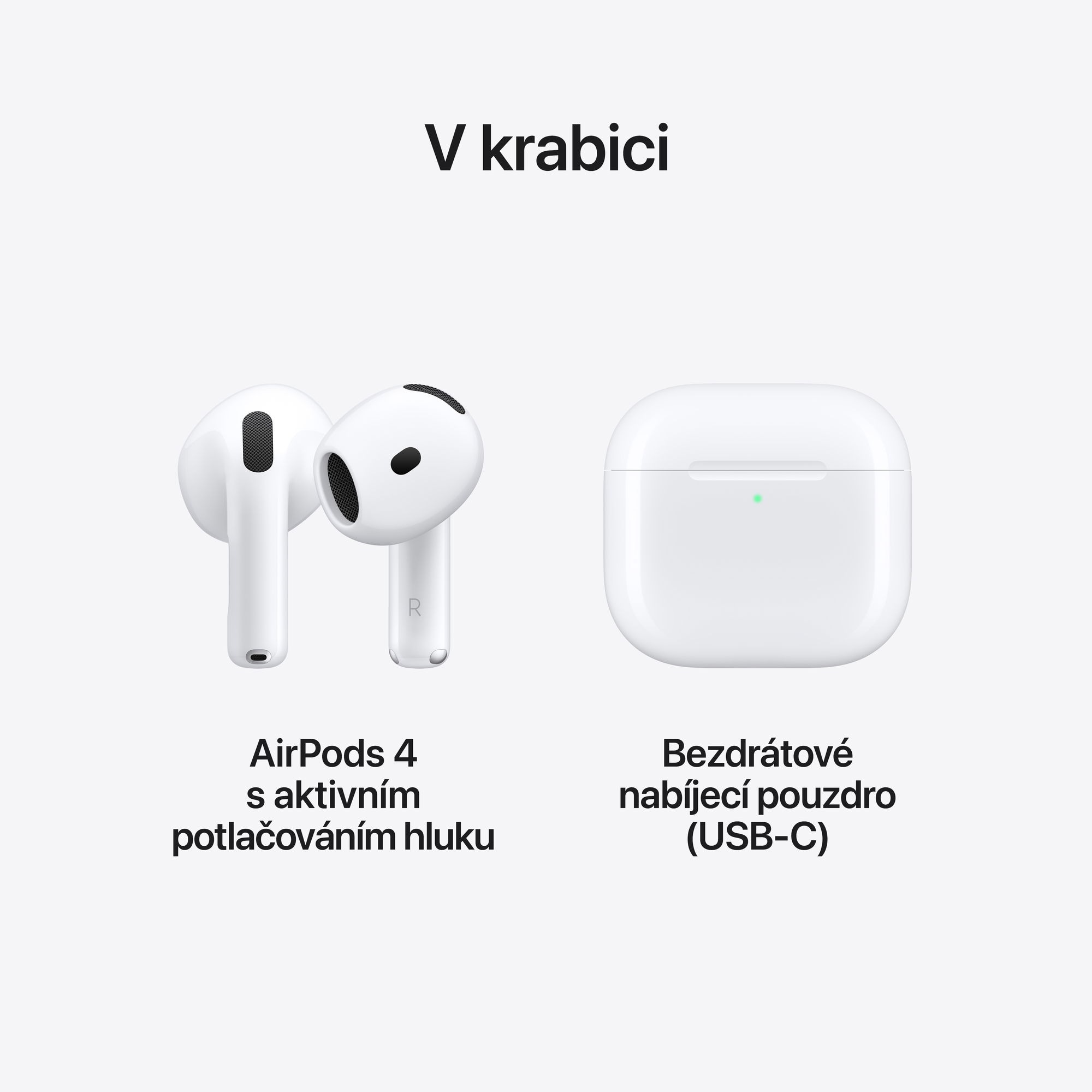 Apple AirPods 4 s aktivním potlačováním hluku (ANC) představují první otevřená sluchátka od Applu, která kombinují pohodlný "peckový" design s pokročilými technologiemi pro izolaci okolí. Díky čipu H2 nabízejí inteligentní funkce jako adaptivní zvuk a detekci konverzací, které se automaticky přizpůsobují vašemu prostředí.