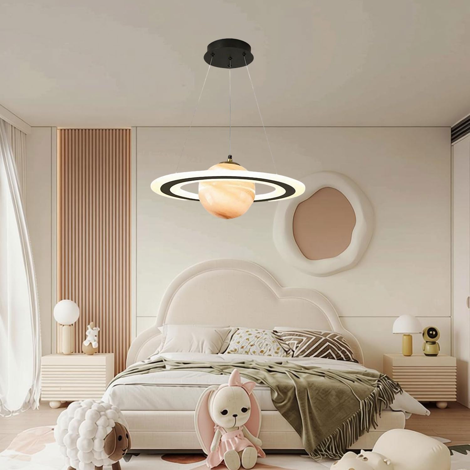 Oživte svůj interiér tímto originálním závěsným svítidlem, které svým tvarem připomíná vzdálenou planetu. Toto designové osvětlení je vyrobeno z vysoce odolného a lehčeného akrylu, který zajišťuje perfektní rozptyl světla bez oslnění. Je ideální volbou pro ty, kteří hledají nevšední doplněk do dětského pokoje, ložnice nebo moderního obývacího pokoje.