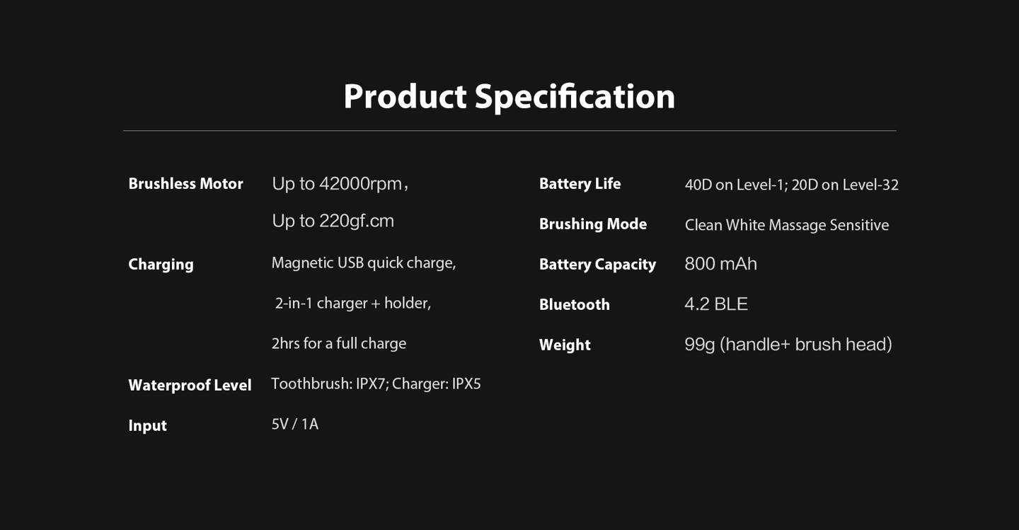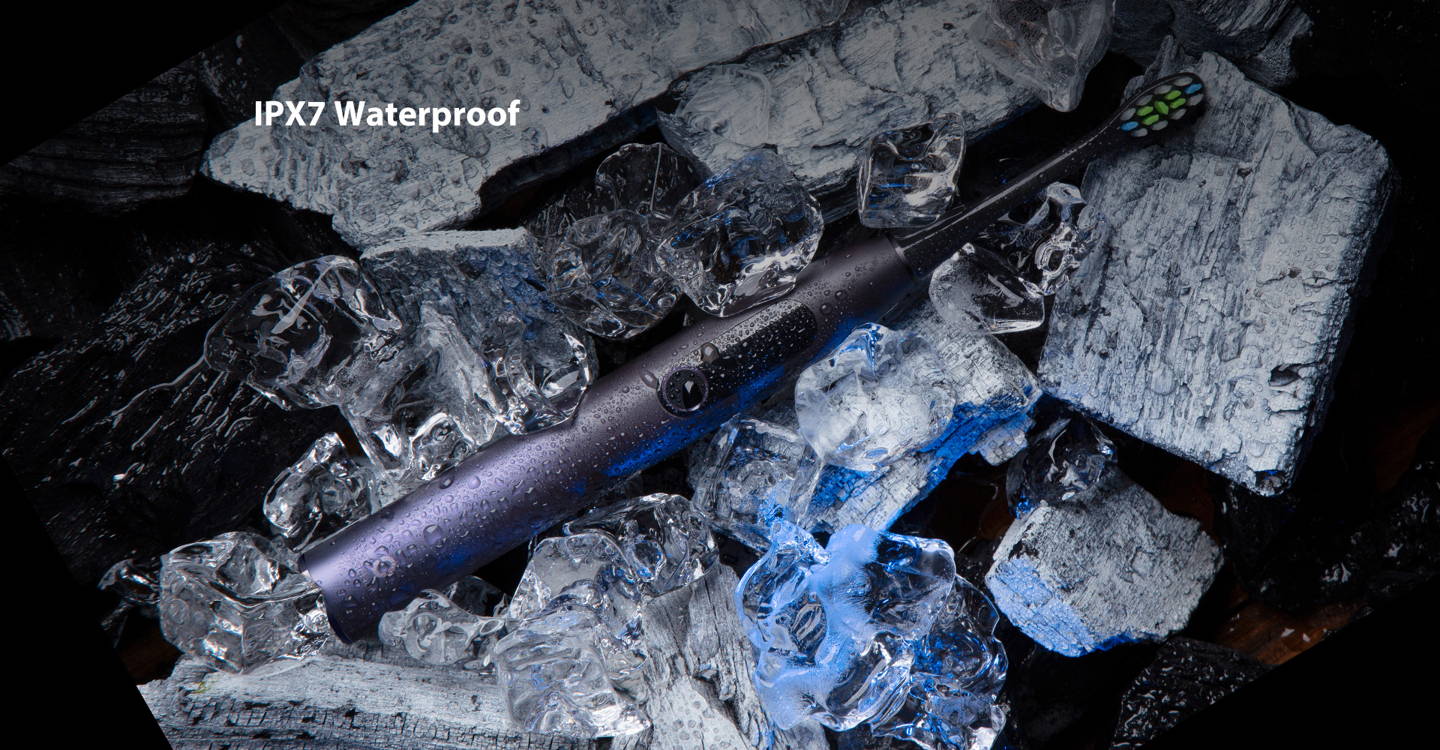 Rukojeť Oclean X Pro je vyrobena z vysoce kvalitního plastu a má příjemný matný povrch. Zařízení má certifikát IPX7, díky kterému si můžete být jisti, že kartáček bude fungovat bez problémů i při plném ponoření do vody. Nemusíte se bát náhodného zaplavení dotykové obrazovky.