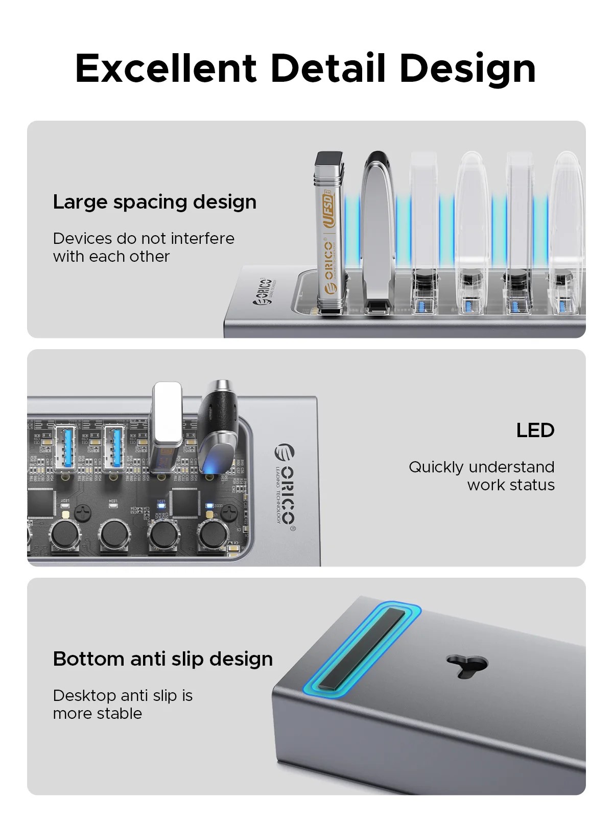 ORICO USB 3.0 Hub Pro (7 Portů, 12V Napájení)