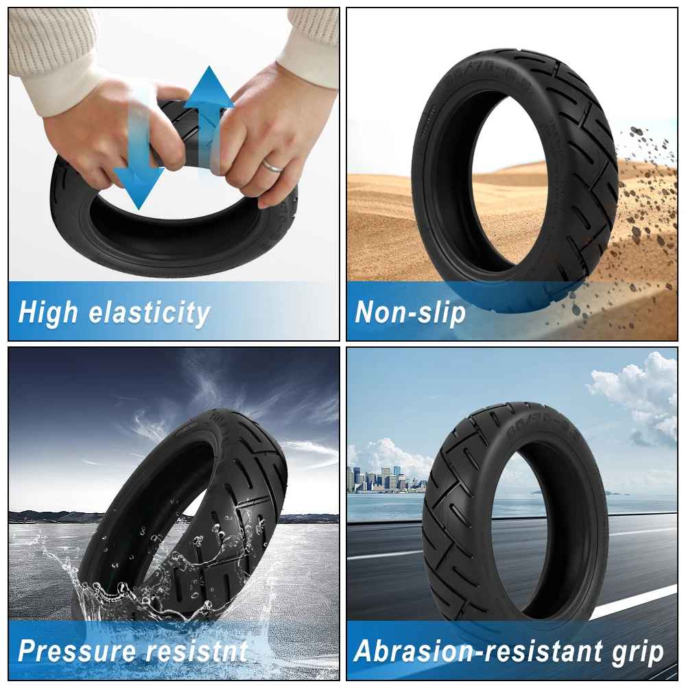 Naše pneumatika je vyrobena z kvalitní pryže, která zaručuje vynikající odolnost proti opotřebení a propíchnutí. Díky robustní konstrukci a speciálnímu dezénu nabízí tato pneumatika skvělou přilnavost na různých površích, ať už jedete po asfaltu, dlažbě nebo mírném terénu. Zajišťuje tak lepší stabilitu a kontrolu nad koloběžkou, což je klíčové pro vaši bezpečnost.