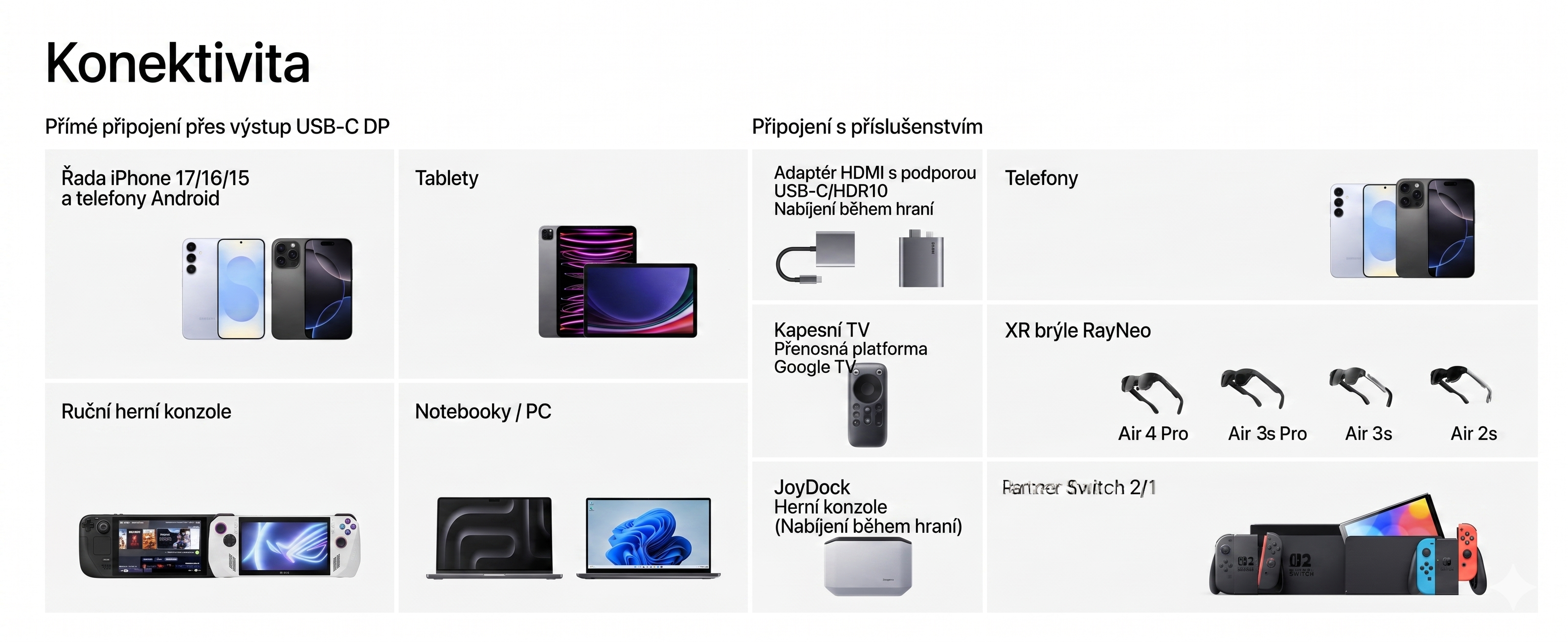 | Kompatibilita a podpora: | Android, iOS (s příslušnými adaptéry), Mac, Windows, herní konzole |