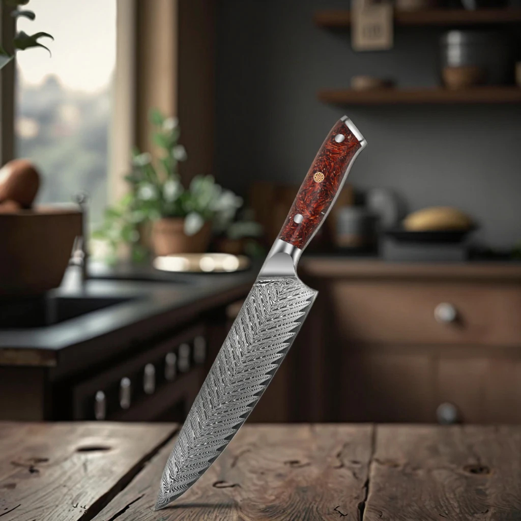 Šéfkuchařský kuchyňský nůž z damaškové oceli - Scarlet Resin