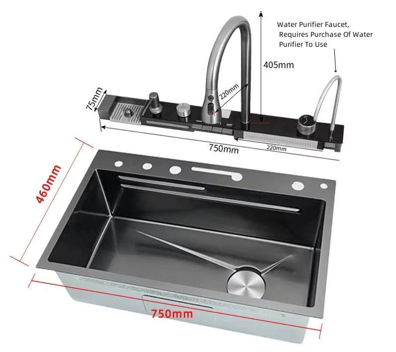 Tento inovatívny drez kombinuje moderný dizajn s maximálnou funkčnosťou, a je tak ideálnou voľbou pre každú súčasnú domácnosť. Zabudnite na bežné drezy – náš model sa pýši integrovanou vodopádovou batériou, ktorá nie je len praktická, ale tiež dodáva kuchyni jedinečný estetický prvok. Predstavte si jemný prúd vody, ktorý elegantne omýva vaše ovocie a zeleninu, zatiaľ čo vy si užívate čisté a moderné prostredie.