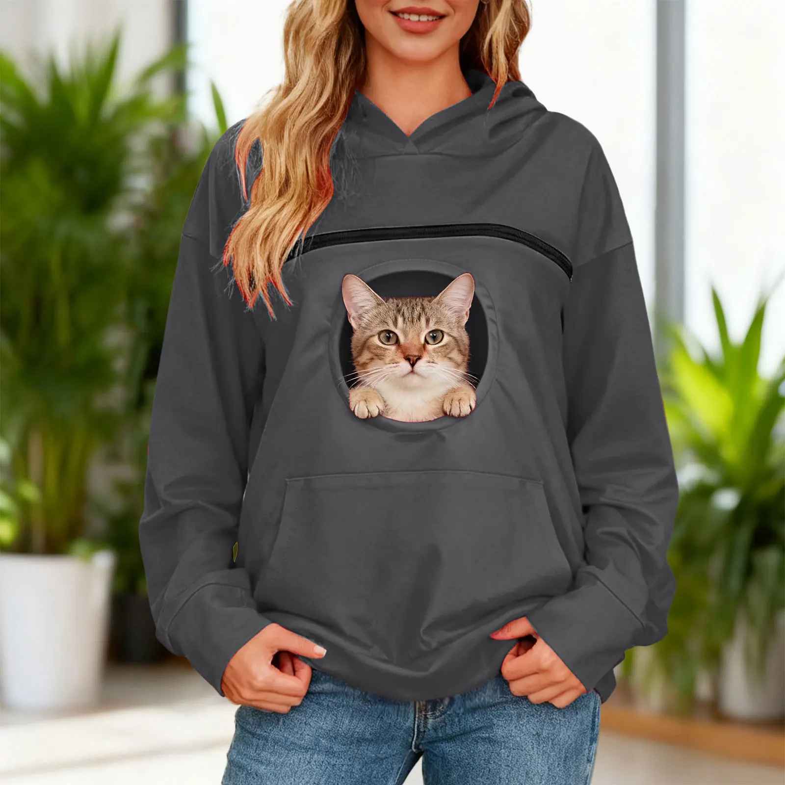 Dámska mikina s kapucňou a vreckom pre domáceho miláčika