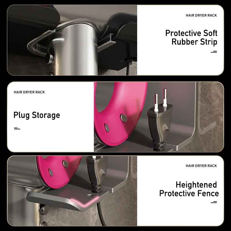 - Úspora priestoru: Montáž na stenu uvoľní miesto na policiach a zaistí, že váš fén bude vždy po ruke a pripravený na použitie.