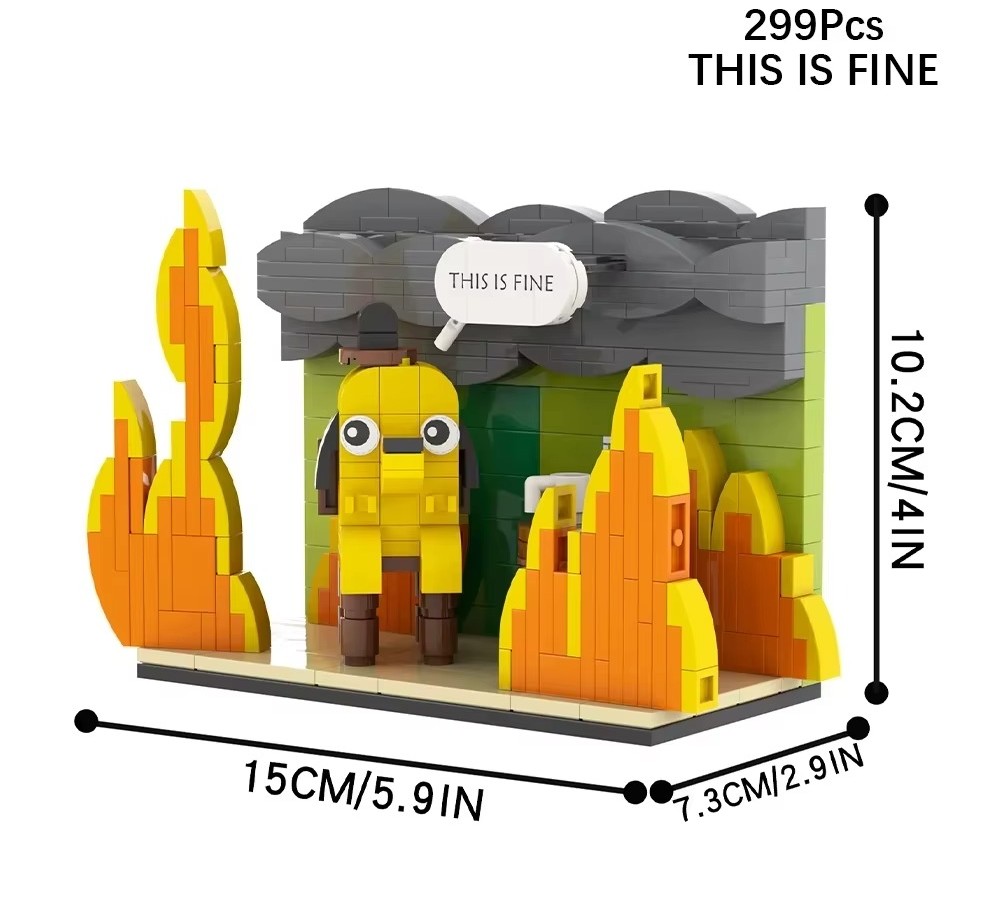 Poznáte ten pocit, keď sa okolo vás všetko rúca, ale vy s pokojom vyhlásite, že je všetko v úplnom poriadku? Táto unikátna zberateľská stavebnica zachytáva ikonickú scénu s psíkom sediacim pri stole uprostred plameňov. Je to perfektný spôsob, ako vyjadriť svoj nadhľad nad každodenným stresom.