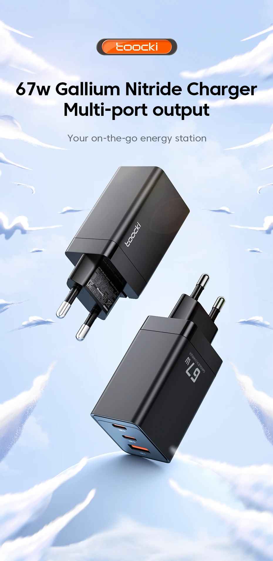 Toocki 67W GaN USB C Rýchlonabíjačka (EU Zástrčka)