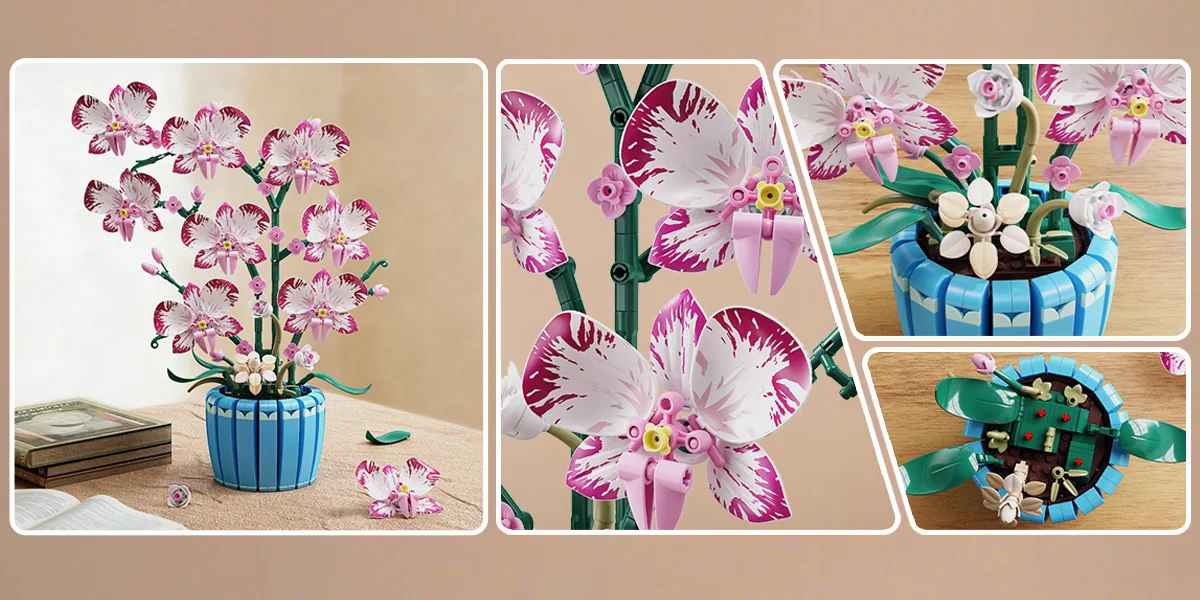 Udělejte radost sobě nebo svým blízkým s touto jedinečnou stavebnicí růžové orchideje. Vytvořte si kousek přírody, který bude kvést navždy!