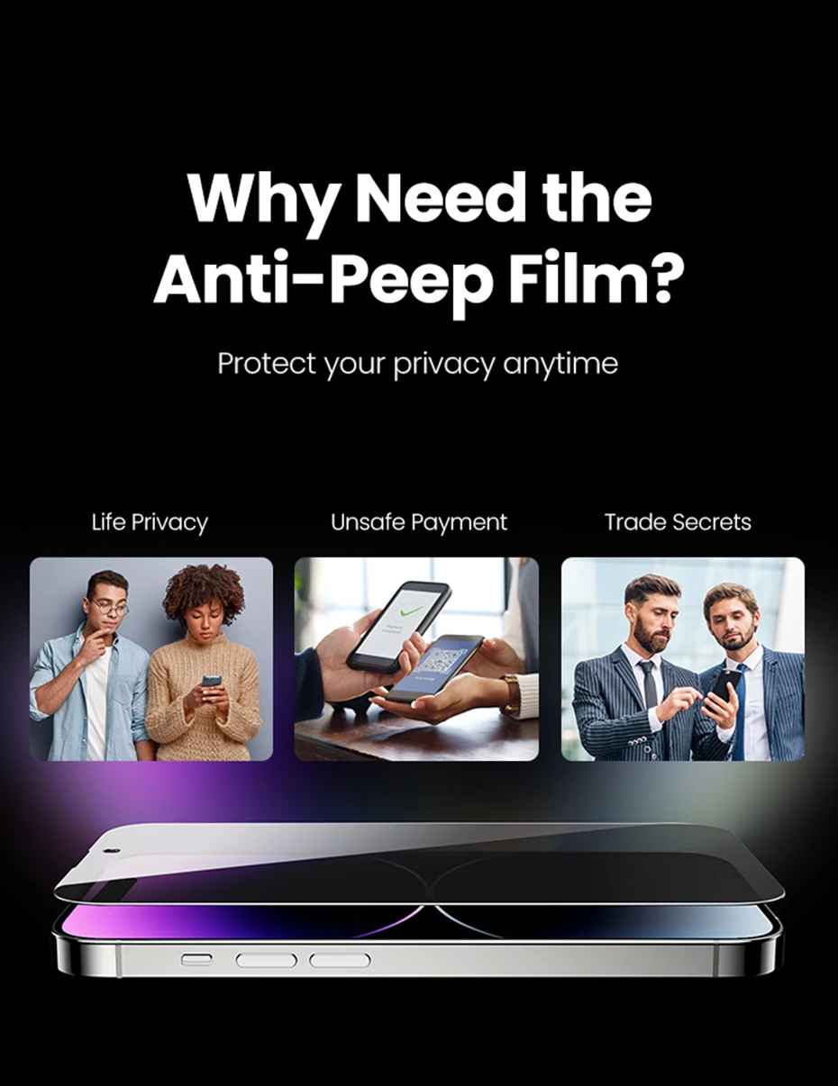 Zabezpečte si své soukromí s ochranným sklem UGREEN, navrženým speciálně pro telefon iPhone 15 Pro. Toto tvrzené sklo vám zajistí, že obsah vašeho displeje zůstane skrytý před zvědavými pohledy, což je ideální pro cesty v MHD, práci v kavárně nebo kdekoli, kde nechcete, aby ostatní viděli, co děláte.